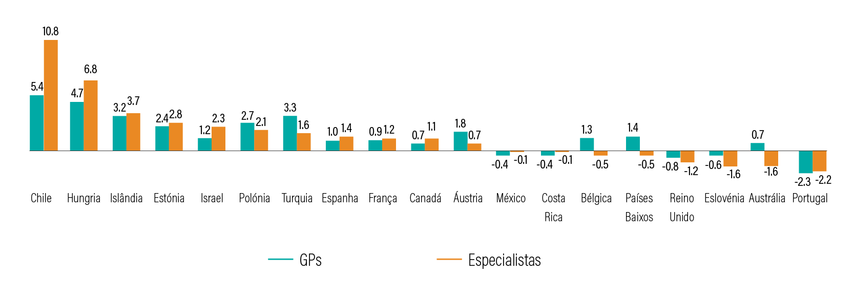 Gráfico 9 / Aumento da remuneração de médicos de clínica geral e especialistas